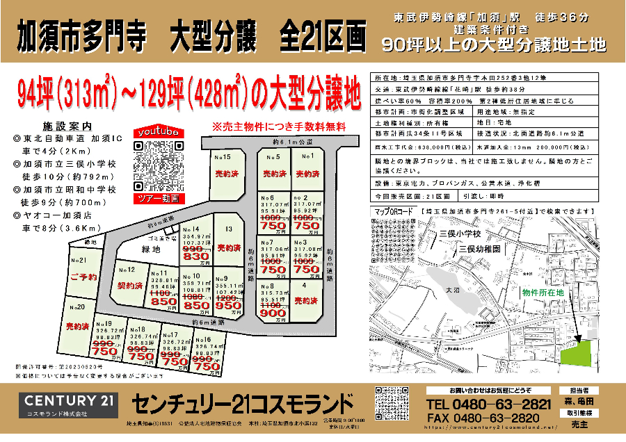 加須市多門寺土地分譲/No7/敷地95坪/750万円 のことならお気軽にご相談ください。